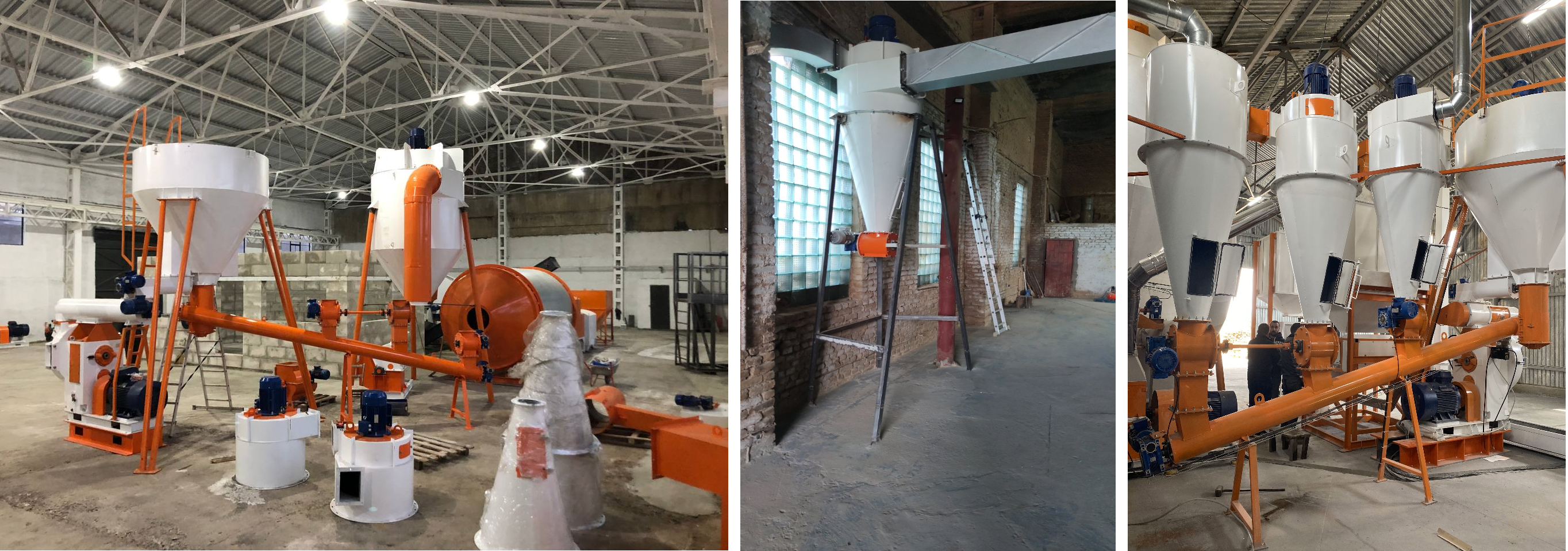 Циклон - частина пневмосистеми лінії гранулювання, і призначена для створення потоку повітря в охолоджувачі, для подачі сировини та повернення пилу. Корпус виконаний з циліндричної частини який має люк, закритий кришкою. Через люк здійснюється контроль за робочим колесом (крильчаткою), а також видаляються залишки сировини з корпусу і робочого колеса (крильчатки). На конусі циклону є дверцята для очистки циклону при зависанні сировини в його конічній частині.